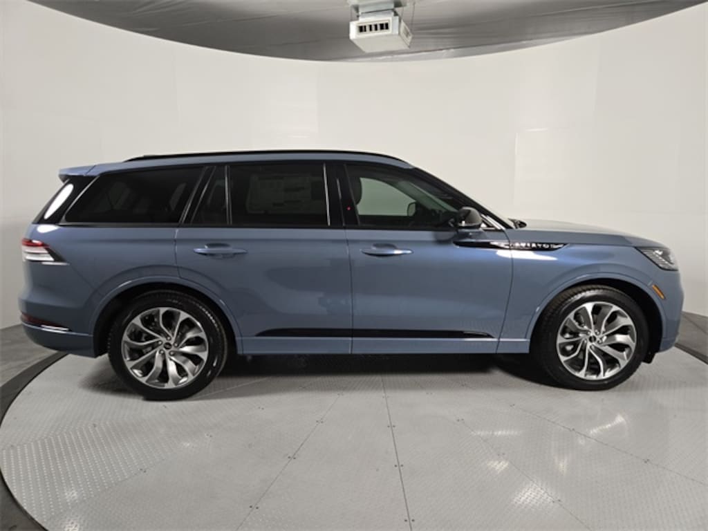 This Lincoln Aviator is equipped with the following features: Equipment Group 101A Premiere II (Auto Air Refresh, Lincoln App, Lincoln BlueCruise Equipped (4-Years Included), Lincoln Digital Experience, Lincoln Soft Touch Comfort Seats, Panoramic Vista Roof with Power Shade, Power Tilt Telescoping Steering Column with Memory, Radio: Lincoln Premium AM/FM/HD Audio System with 10 Speakers, SiriusXM, Wheels: 20" Magnetic Bright-Machined Aluminum, and Wireless Charging), Jet Appearance Package (Black Exterior Elements, Body-Color Exterior Elements, and Wheels: 21" Bright Machined Aluminum with Dark Alloy Painted Pockets), Lincoln Connectivity Package (4-Years), 10 Speakers, 3rd row seats: split-bench, 4-Wheel Disc Brakes, ABS brakes, Adaptive suspension, Air Conditioning, Alloy wheels, AM/FM radio: SiriusXM, Apple CarPlay/Android Auto, Audio memory, Auto High-beam Headlights, Auto-dimming door mirrors, Auto-dimming Rear-View mirror, Automatic temperature control, Brake assist, Bumpers: body-color, Compass, Delay-off headlights, Driver door bin, Driver vanity mirror, Dual front impact airbags, Dual front side impact airbags, Electronic Stability Control, Emergency communication system: 911 Assist, Four wheel independent suspension, Front anti-roll bar, Front Bucket Seats, Front Center Armrest, Front dual zone A/C, Front License Plate Bracket, Front reading lights, Fully automatic headlights, Garage door transmitter, Heads-Up Display, Heated door mirrors, Heated Front Driver and Passenger Seats, Heated front seats, Heated steering wheel, HVAC memory, Illuminated entry, Knee airbag, Leather steering wheel, Low tire pressure warning, Memory seat, Navigation system: Google Maps, Occupant sensing airbag, Outside temperature display, Overhead airbag, Overhead console, Panic alarm, Passenger door bin, Passenger vanity mirror, Power door mirrors, Power driver seat, Power Liftgate, Power passenger seat, Power steering, Power windows, Radio data system, Rain sensing wipers, Rear air conditioning, Rear anti-roll bar, Rear audio controls, Rear reading lights, Rear window defroster, Rear window wiper, Remote keyless entry, Security system, Speed control, Speed-Sensitive Wipers, Split folding rear seat, Spoiler, Steering wheel mounted A/C controls, Steering wheel mounted audio controls, Tachometer, Telescoping steering wheel, Tilt steering wheel, Traction control, Trip computer, Turn signal indicator mirrors, and Variably intermittent wipers.