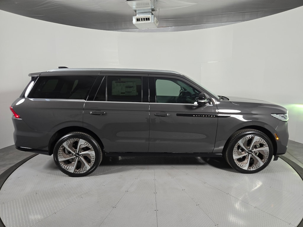 This Lincoln Navigator is equipped with the following features: Equipment Group 801A Black Label (Auto Heated/Ventilated Opulence Leather Captain's Chairs, BlueCruise Equipped (4-Years Included), Lincoln App, Lincoln Digital Experience, Radiant Copper Grille, Radio: Revel Ultima 3D Audio System, SiriusXM with 360L (3 Months Trial), Special Edition Radiant Copper Badge, and Wheels: 24" Radiant Copper Aluminum), Lincoln Connectivity Package (4-Years Included), Lincoln Security Package, 4WD, Salt Crystal Gray W/Adobe Leather, 28 Speakers, 3rd row seats: split-bench, 4-Wheel Disc Brakes, ABS brakes, Adaptive suspension, Adjustable pedals, Air Conditioning, All-Weather Floor Liners with Front and Rear Carpet Floor Mats, Alloy wheels, AM/FM radio: SiriusXM with 360L, Apple CarPlay/Android Auto, Atmospheric Theme, Audio memory, Auto High-beam Headlights, Auto Start-Stop Technology, Auto tilt-away steering wheel, Auto-dimming door mirrors, Auto-dimming Rear-View mirror, Auto-leveling suspension, Automatic temperature control, Brake assist, Bumpers: body-color, Compass, Delay-off headlights, Driver door bin, Driver vanity mirror, Driver's Seat Mounted Armrest, Dual front impact airbags, Dual front side impact airbags, Electronic Stability Control, Emergency communication system: 911 Assist, Enlighten Theme, Exterior Parking Camera Rear, Four wheel independent suspension, Front anti-roll bar, Front Bucket Seats, Front dual zone A/C, Front License Plate Bracket, Front reading lights, Fully automatic headlights, Garage door transmitter, Head restraints memory, Heated door mirrors, Heated front seats, Heated rear seats, Heated steering wheel, HVAC memory, Illuminated entry, Leather steering wheel, Low tire pressure warning, Memory seat, Navigation system: Connected Navigation (1-year trial), Occupant sensing airbag, Outside temperature display, Overhead airbag, Overhead console, Panic alarm, Passenger door bin, Passenger seat mounted armrest, Passenger vanity mirror, Pedal memory, Power adjustable front head restraints, Power adjustable rear head restraints, Power door mirrors, Power driver seat, Power moonroof: Panoramic Vista Roof, Power passenger seat, Power steering, Power windows, Radio data system, Rain sensing wipers, Rear air conditioning, Rear anti-roll bar, Rear audio controls, Rear reading lights, Rear seat center armrest, Rear window defroster, Rear window wiper, Reclining 3rd row seat, Remote keyless entry, Security system, Speed control, Speed-sensing steering, Speed-Sensitive Wipers, Split folding rear seat, Spoiler, Steering wheel memory, Steering wheel mounted audio controls, Tachometer, Telescoping steering wheel, Tilt steering wheel, Traction control, Trip computer, Turn signal indicator mirrors, Variably intermittent wipers, Ventilated front seats, Ventilated rear seats, and Wheels: 22" High-Gloss Ebony Aluminum.