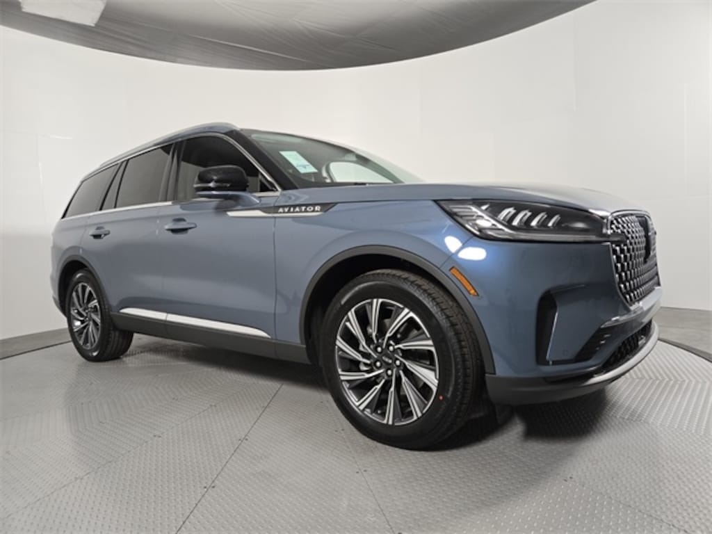 This Lincoln Aviator is equipped with the following features: Equipment Group 100A Premiere I (Lincoln App, Lincoln BlueCruise Equipped (4-Years Included), Lincoln Digital Experience, Lincoln Soft Touch Comfort Seats, Radio: Lincoln Premium AM/FM/HD Audio System with 10 Speakers, SiriusXM, and Wheels: 20" Magnetic Bright-Machined Aluminum), Lincoln Connectivity Package (4-Years), 10 Speakers, 3rd row seats: split-bench, 4-Wheel Disc Brakes, ABS brakes, Adaptive suspension, Air Conditioning, Alloy wheels, AM/FM radio: SiriusXM, Apple CarPlay/Android Auto, Audio memory, Auto High-beam Headlights, Auto-dimming door mirrors, Auto-dimming Rear-View mirror, Automatic temperature control, Brake assist, Bumpers: body-color, Compass, Delay-off headlights, Driver door bin, Driver vanity mirror, Dual front impact airbags, Dual front side impact airbags, Electronic Stability Control, Emergency communication system: 911 Assist, Four wheel independent suspension, Front anti-roll bar, Front Bucket Seats, Front Center Armrest, Front dual zone A/C, Front License Plate Bracket, Front reading lights, Fully automatic headlights, Garage door transmitter, Heads-Up Display, Heated door mirrors, Heated Front Driver and Passenger Seats, Heated front seats, Heated steering wheel, HVAC memory, Illuminated entry, Knee airbag, Leather steering wheel, Low tire pressure warning, Memory seat, Navigation system: Google Maps, Occupant sensing airbag, Outside temperature display, Overhead airbag, Overhead console, Panic alarm, Passenger door bin, Passenger vanity mirror, Power door mirrors, Power driver seat, Power Liftgate, Power passenger seat, Power steering, Power windows, Radio data system, Rain sensing wipers, Rear air conditioning, Rear anti-roll bar, Rear audio controls, Rear reading lights, Rear window defroster, Rear window wiper, Remote keyless entry, Security system, Speed control, Speed-Sensitive Wipers, Split folding rear seat, Spoiler, Steering wheel mounted A/C controls, Steering wheel mounted audio controls, Tachometer, Telescoping steering wheel, Tilt steering wheel, Traction control, Trip computer, Turn signal indicator mirrors, and Variably intermittent wipers.