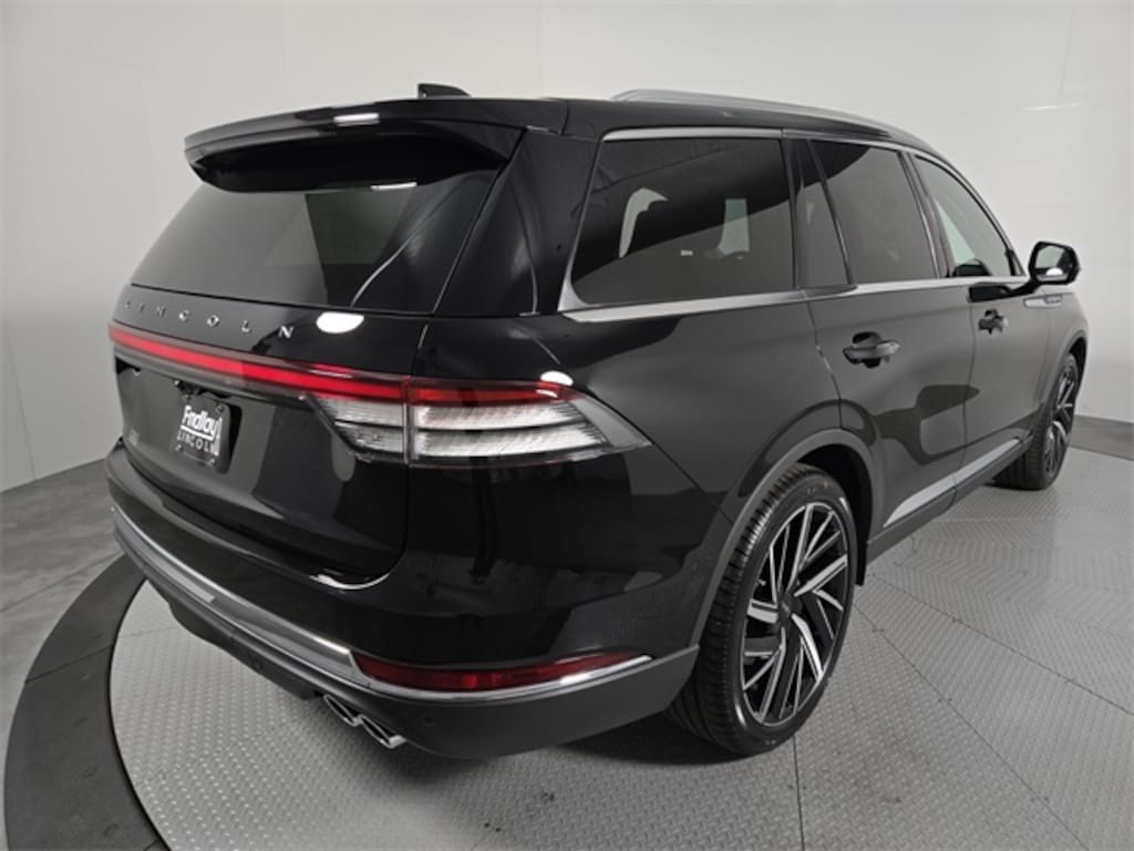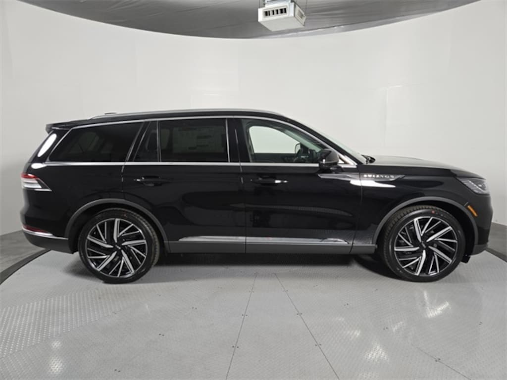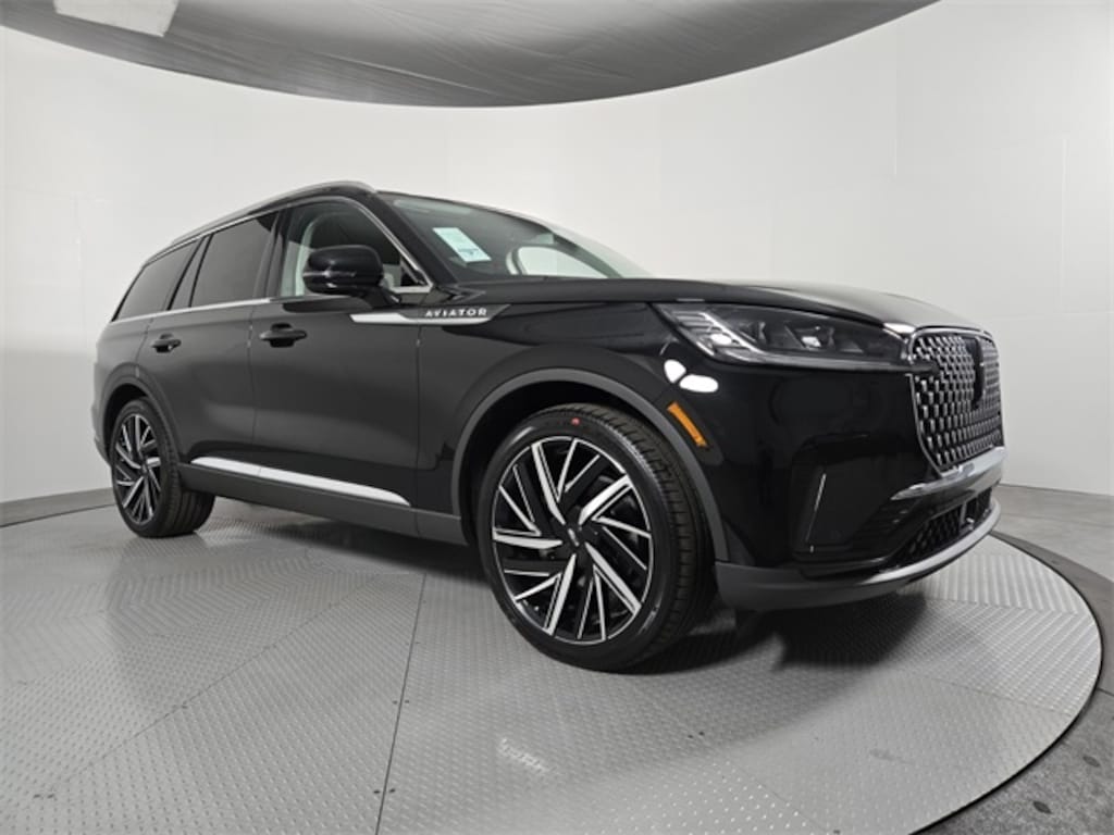 This Lincoln Aviator is equipped with the following features: Dynamic Handling Package (Air Glide Suspension with Dynamic Lower Entry), Equipment Group 201A Reserve II (Advanced Heads-Up Display, Auto Air Refresh, Auto Heated and Ventilated Driver and Passenger Seats, Lincoln BlueCruise Equipped (4-Years Included), Premium Leather Front Captain's Chairs, Wheels: 22" Bright-Machined Aluminum with Magnetic Painted Pockets, and Wireless Charging Pad), Illumination Package (Adaptive Dynamic Bending Lighting, Adaptive Pixel LED Headlamps, Illuminated Lincoln Star in Grille, Lincoln Dynamic Signature Lighting, and Speed Dependent Lighting), Lincoln Connectivity Package (4-Years), Luxury Package (30-Way Perfect Position Seats with Active Motion, Heated and Ventilated Rear Seats, and Radio: Revel Ultima 3D Audio System with 28 Speakers), 14 Speakers, 3rd row seats: split-bench, 4-Wheel Disc Brakes, 40/Mini Console/40 Dual Captain's Chairs, ABS brakes, Adaptive suspension, Air Conditioning, Alloy wheels, AM/FM radio: SiriusXM, Apple CarPlay/Android Auto, Audio memory, Auto High-beam Headlights, Auto-dimming door mirrors, Auto-dimming Rear-View mirror, Automatic temperature control, Brake assist, Bumpers: body-color, Compass, Delay-off headlights, Driver door bin, Driver vanity mirror, Dual front impact airbags, Dual front side impact airbags, Electronic Stability Control, Emergency communication system: 911 Assist, Four wheel independent suspension, Front anti-roll bar, Front Bucket Seats, Front Center Armrest, Front dual zone A/C, Front License Plate Bracket, Front reading lights, Fully automatic headlights, Garage door transmitter, Genuine wood console insert, Genuine wood dashboard insert, Heads-Up Display, Heated door mirrors, Heated front seats, Heated steering wheel, HVAC memory, Illuminated entry, Knee airbag, Leather steering wheel, Lincoln App, Lincoln Digital Experience, Low tire pressure warning, Memory seat, Navigation system: Google Maps, Occupant sensing airbag, Outside temperature display, Overhead airbag, Overhead console, Panic alarm, Passenger door bin, Passenger vanity mirror, Power door mirrors, Power driver seat, Power Liftgate, Power moonroof: Panoramic Vista Roof, Power passenger seat, Power steering, Power windows, Radio data system, Radio: Revel Audio System with 14 Speakers, Rain sensing wipers, Rear air conditioning, Rear anti-roll bar, Rear audio controls, Rear dual zone A/C, Rear reading lights, Rear window defroster, Rear window wiper, Remote keyless entry, Security system, SiriusXM, Speed control, Speed-Sensitive Wipers, Split folding rear seat, Spoiler, Steering wheel memory, Steering wheel mounted A/C controls, Steering wheel mounted audio controls, Tachometer, Telescoping steering wheel, Tilt steering wheel, Traction control, Trip computer, Turn signal indicator mirrors, Variably intermittent wipers, Ventilated front seats, Wheels: 21" Bright-Machined Aluminum with Dark Alloy Painted Pockets, and Wheels: 22" Ebony Black Bright-Machined.