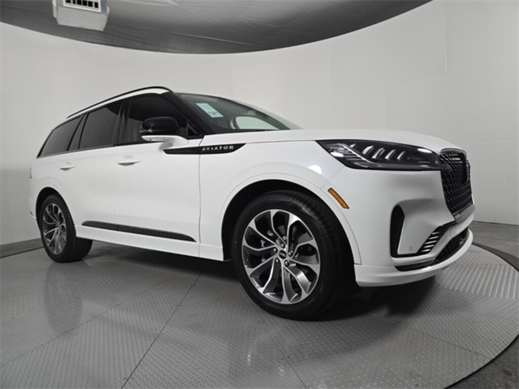 This Lincoln Aviator is equipped with the following features: Equipment Group 100A Premiere I (Lincoln App, Lincoln BlueCruise Equipped (4-Years Included), Lincoln Digital Experience, Lincoln Soft Touch Comfort Seats, Radio: Lincoln Premium AM/FM/HD Audio System with 10 Speakers, SiriusXM, and Wheels: 20" Magnetic Bright-Machined Aluminum), Jet Appearance Package (Black Exterior Elements, Body-Color Exterior Elements, and Wheels: 21" Bright Machined Aluminum with Dark Alloy Painted Pockets), Lincoln Connectivity Package (4-Years), 10 Speakers, 3rd row seats: split-bench, 4-Wheel Disc Brakes, ABS brakes, Adaptive suspension, Air Conditioning, Alloy wheels, AM/FM radio: SiriusXM, Apple CarPlay/Android Auto, Audio memory, Auto High-beam Headlights, Auto-dimming door mirrors, Auto-dimming Rear-View mirror, Automatic temperature control, Brake assist, Bumpers: body-color, Compass, Delay-off headlights, Driver door bin, Driver vanity mirror, Dual front impact airbags, Dual front side impact airbags, Electronic Stability Control, Emergency communication system: 911 Assist, Four wheel independent suspension, Front anti-roll bar, Front Bucket Seats, Front Center Armrest, Front dual zone A/C, Front License Plate Bracket, Front reading lights, Fully automatic headlights, Garage door transmitter, Heads-Up Display, Heated door mirrors, Heated Front Driver and Passenger Seats, Heated front seats, Heated steering wheel, HVAC memory, Illuminated entry, Knee airbag, Leather steering wheel, Low tire pressure warning, Memory seat, Navigation system: Google Maps, Occupant sensing airbag, Outside temperature display, Overhead airbag, Overhead console, Panic alarm, Passenger door bin, Passenger vanity mirror, Power door mirrors, Power driver seat, Power Liftgate, Power passenger seat, Power steering, Power windows, Radio data system, Rain sensing wipers, Rear air conditioning, Rear anti-roll bar, Rear audio controls, Rear reading lights, Rear window defroster, Rear window wiper, Remote keyless entry, Security system, Speed control, Speed-Sensitive Wipers, Split folding rear seat, Spoiler, Steering wheel mounted A/C controls, Steering wheel mounted audio controls, Tachometer, Telescoping steering wheel, Tilt steering wheel, Traction control, Trip computer, Turn signal indicator mirrors, and Variably intermittent wipers.