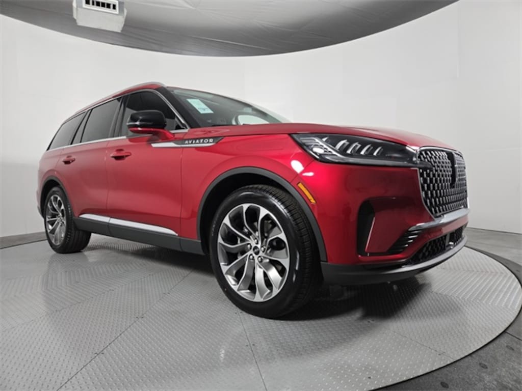 This Lincoln Aviator is equipped with the following features: Equipment Group 100A Premiere I (Lincoln App, Lincoln BlueCruise Equipped (4-Years Included), Lincoln Digital Experience, Lincoln Soft Touch Comfort Seats, Radio: Lincoln Premium AM/FM/HD Audio System with 10 Speakers, SiriusXM, and Wheels: 20" Magnetic Bright-Machined Aluminum), Lincoln Connectivity Package (4-Years), 10 Speakers, 3rd row seats: split-bench, 4-Wheel Disc Brakes, ABS brakes, Adaptive suspension, Air Conditioning, All-Weather 1st and 2nd Row Floor Liners, Alloy wheels, AM/FM radio: SiriusXM, Apple CarPlay/Android Auto, Audio memory, Auto High-beam Headlights, Auto-dimming door mirrors, Auto-dimming Rear-View mirror, Automatic temperature control, Brake assist, Bumpers: body-color, Compass, Delay-off headlights, Driver door bin, Driver vanity mirror, Dual front impact airbags, Dual front side impact airbags, Electronic Stability Control, Emergency communication system: 911 Assist, Four wheel independent suspension, Front anti-roll bar, Front Bucket Seats, Front Center Armrest, Front dual zone A/C, Front License Plate Bracket, Front reading lights, Fully automatic headlights, Garage door transmitter, Heads-Up Display, Heated door mirrors, Heated Front Driver and Passenger Seats, Heated front seats, Heated steering wheel, HVAC memory, Illuminated entry, Knee airbag, Leather steering wheel, Low tire pressure warning, Memory seat, Navigation system: Google Maps, Occupant sensing airbag, Outside temperature display, Overhead airbag, Overhead console, Panic alarm, Passenger door bin, Passenger vanity mirror, Power door mirrors, Power driver seat, Power Liftgate, Power passenger seat, Power steering, Power windows, Radio data system, Rain sensing wipers, Rear air conditioning, Rear anti-roll bar, Rear audio controls, Rear reading lights, Rear window defroster, Rear window wiper, Remote keyless entry, Security system, SiriusXM with 360L (4-Years Plan), Speed control, Speed-Sensitive Wipers, Split folding rear seat, Spoiler, Steering wheel mounted A/C controls, Steering wheel mounted audio controls, Tachometer, Telescoping steering wheel, Tilt steering wheel, Traction control, Trip computer, Turn signal indicator mirrors, Variably intermittent wipers, and Wheels: 21" Bright Machined Aluminum with Dark Alloy Painted Pockets.