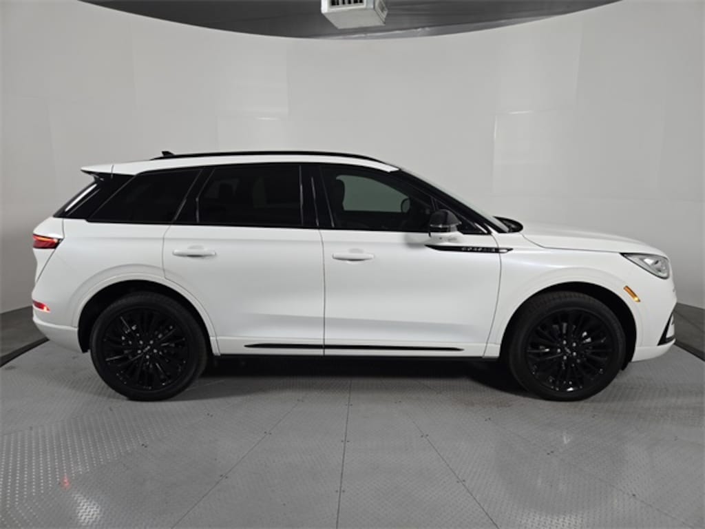 This Lincoln Corsair is equipped with the following features: Equipment Group 201A (2 Additional USB Ports in Rear of Center Console, 60/40 EasyFold Rear Seat w/Power Seatback Release, Frameless Auto Dimming Rearview Mirror, Hands-Free Liftgate, Heated Sideview Mirrors, Heated Steering Wheel, Heated/Ventilated Driver & Front Passenger Seats, Phone As A Key (PAAK), Power Tilt/Telescoping Steering Column w/Memory, Rain Sensing Wipers, Universal Garage Door Opener, Windshield Wiper De-Icer, and Wireless Charging Pad), Jet Appearance Package (Body-Color Exterior Elements, Pillar Black Exterior Elements, and Wheels: 20" Black Aluminum), 19" Bright Machined Aluminum Wheels, 360-Degree Camera, 4-Wheel Disc Brakes, 9 Speakers, ABS brakes, Air Conditioning, Alexa Built-In, All-Weather Floor Liners, Alloy wheels, AM/FM radio: SiriusXM with 360L, Apple CarPlay/Android Auto, Auto High-beam Headlights, Auto-dimming Rear-View mirror, Automatic temperature control, Brake assist, Bumpers: body-color, Compass, Delay-off headlights, Driver door bin, Driver vanity mirror, Dual front impact airbags, Dual front side impact airbags, Electronic Stability Control, Emergency communication system: 911 Assist, Exterior Parking Camera Rear, Four wheel independent suspension, Front anti-roll bar, Front Bucket Seats, Front Center Armrest, Front dual zone A/C, Front License Plate Bracket, Front Parking Sensors, Front reading lights, Fully automatic headlights, Heated door mirrors, Heated front seats, Illuminated entry, Knee airbag, Leather steering wheel, Low tire pressure warning, Memory seat, Navigation system: Connected Navigation (4-year trial), Occupant sensing airbag, Outside temperature display, Overhead airbag, Overhead console, Panic alarm, Panoramic Vista Roof w/Power Shade, Passenger door bin, Passenger vanity mirror, Post-Collision Braking, Power door mirrors, Power driver seat, Power Liftgate, Power passenger seat, Power steering, Power windows, Premium Leather-Trimmed Heated Captain's Chairs, Radio data system, Radio: Lincoln Premium Audio System w/MP3, Rear anti-roll bar, Rear Parking Sensors, Rear reading lights, Rear seat center armrest, Rear window defroster, Rear window wiper, Remote keyless entry, Reverse Brake Assist, Security system, SiriusXM w/360L Radio, Speed control, Speed-sensing steering, Speed-Sensitive Wipers, Split folding rear seat, Spoiler, Steering wheel mounted A/C controls, Steering wheel mounted audio controls, SYNC 4 Communications & Entertainment System, Tachometer, Telescoping steering wheel, Tilt steering wheel, Traction control, Trip computer, and Variably intermittent wipers.