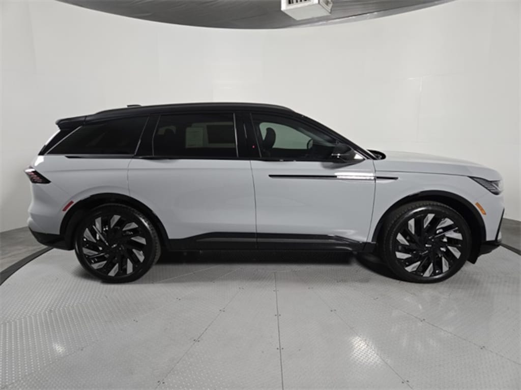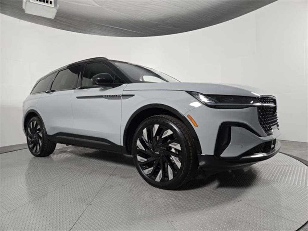 This Lincoln Nautilus is equipped with the following features: Equipment Group 202A Reserve II (110V Power Converter, Auto Air Refresh, BlueCruise Equipped (4-Years Included), Digital Scent, Hands-Free Power Liftgate, Lincoln Digital Experience, Panoramic Vista Roof with Powershade, Premium Leather Trimmed Captain's Chairs, Radio: AM/FM Revel Audio System, Rear Heated Seats with Switch Control, and SiriusXM with 360L), Jet Appearance Package (Black Exterior Elements, Body-Color Exterior Elements, and Wheels: : 22" Satin Dark Luster Aluminum), Lincoln Connectivity Package, 10 Speakers, 4-Wheel Disc Brakes, ABS brakes, Adaptive suspension, Air Conditioning, Alloy wheels, AM/FM radio: SiriusXM with 360L, Apple CarPlay/Android Auto, Auto High-beam Headlights, Auto tilt-away steering wheel, Auto-dimming Rear-View mirror, Automatic temperature control, Brake assist, Bumpers: body-color, Compass, Delay-off headlights, Driver door bin, Driver vanity mirror, Dual front impact airbags, Dual front side impact airbags, Electronic Stability Control, Emergency communication system: 911 Assist, Exterior Parking Camera Rear, Four wheel independent suspension, Front anti-roll bar, Front Bucket Seats, Front Center Armrest w/Storage, Front dual zone A/C, Front reading lights, Fully automatic headlights, Garage door transmitter, Heated door mirrors, Heated front seats, Heated steering wheel, Illuminated entry, Knee airbag, Leather steering wheel, Low tire pressure warning, Memory seat, Navigation System, Occupant sensing airbag, Outside temperature display, Overhead airbag, Overhead console, Panic alarm, Passenger door bin, Passenger vanity mirror, Power door mirrors, Power driver seat, Power Liftgate, Power passenger seat, Power steering, Power windows, Radio data system, Rain sensing wipers, Rear anti-roll bar, Rear reading lights, Rear seat center armrest, Rear window defroster, Rear window wiper, Remote keyless entry, Security system, Speed control, Speed-sensing steering, Speed-Sensitive Wipers, Split folding rear seat, Spoiler, Steering wheel memory, Steering wheel mounted audio controls, Tachometer, Telescoping steering wheel, Tilt steering wheel, Traction control, Trip computer, Turn signal indicator mirrors, Variably intermittent wipers, and Ventilated front seats.