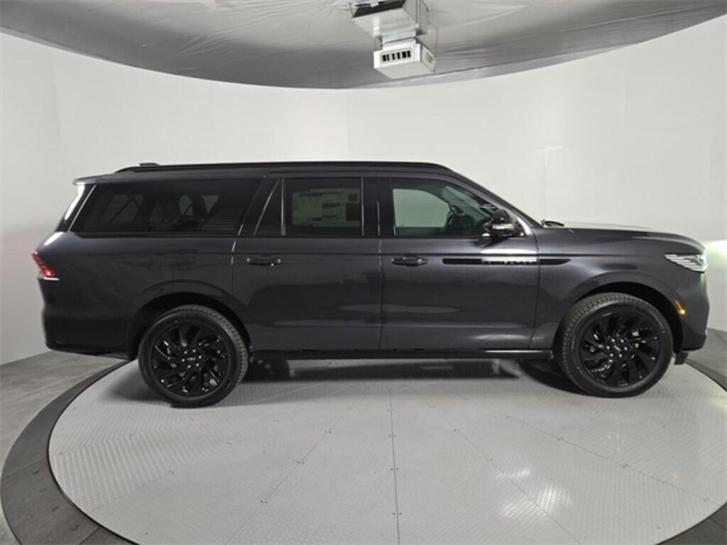This Lincoln Navigator L is equipped with the following features: Equipment Group 202A Reserve II (Auto Heated/Ventilated Premium Leather Captain's Chairs, BlueCruise Equipped (4-Years Included), Lincoln App, Lincoln Digital Experience, Radio: Revel Ultima 3D Audio System, SiriusXM with 360L (3 Months Trial), and Wheels: 22" Dark Tarnished Aluminum), Jet Appearance Package (Black Accent Badge, Black Accent Interior Pack, Black Beltline Molding, Black Painted Roof Rails, Front Bumper Fascia, Lincoln Lit Star, Unique Lincoln Grille Pillar Black Surround, and Wheels: 22" High-Gloss Ebony Aluminum), Lincoln Connectivity Package (4-Years Included), Lincoln Security Package, 28 Speakers, 2nd Row Heated 40/20/40 Split Bench Seat, 3rd row seats: split-bench, 4-Wheel Disc Brakes, ABS brakes, Adaptive suspension, Air Conditioning, Alloy wheels, AM/FM radio: SiriusXM with 360L, Apple CarPlay/Android Auto, Audio memory, Auto High-beam Headlights, Auto Start-Stop Technology, Auto tilt-away steering wheel, Auto-dimming door mirrors, Auto-dimming Rear-View mirror, Auto-leveling suspension, Automatic temperature control, Brake assist, Bumpers: body-color, Compass, Delay-off headlights, Driver door bin, Driver vanity mirror, Driver's Seat Mounted Armrest, Dual front impact airbags, Dual front side impact airbags, Electronic Stability Control, Emergency communication system: 911 Assist, Exterior Parking Camera Rear, Four wheel independent suspension, Front anti-roll bar, Front Bucket Seats, Front dual zone A/C, Front License Plate Bracket, Front reading lights, Fully automatic headlights, Garage door transmitter, Heated door mirrors, Heated front seats, Heated rear seats, Heated steering wheel, HVAC memory, Illuminated entry, Leather steering wheel, Low tire pressure warning, Memory seat, Navigation system: Connected Navigation (1-year trial), Occupant sensing airbag, Outside temperature display, Overhead airbag, Overhead console, Panic alarm, Passenger door bin, Passenger seat mounted armrest, Passenger vanity mirror, Power adjustable rear head restraints, Power door mirrors, Power driver seat, Power moonroof: Panoramic Vista Roof, Power passenger seat, Power steering, Power windows, Radio data system, Rain sensing wipers, Rear air conditioning, Rear anti-roll bar, Rear audio controls, Rear reading lights, Rear window defroster, Rear window wiper, Reclining 3rd row seat, Remote keyless entry, Security system, Speed control, Speed-sensing steering, Speed-Sensitive Wipers, Split folding rear seat, Spoiler, Steering wheel memory, Steering wheel mounted audio controls, Tachometer, Telescoping steering wheel, Tilt steering wheel, Traction control, Trip computer, Turn signal indicator mirrors, Variably intermittent wipers, and Ventilated front seats.