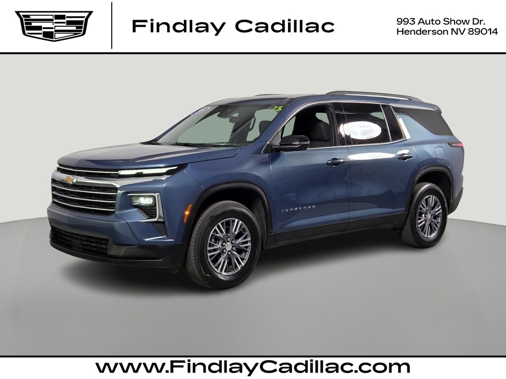 Welcome to Findlay Lincoln. All of our vehicles are hand picked and inspected for your peace of mind. This vehicle is equipped with the following options: Preferred Equipment Group 1LT, 3rd row seats: split-bench, 4-Way Manual Front Passenger Seat Adjuster, 4-Wheel Disc Brakes, 6 Speakers, 6-Speaker Audio System Feature, 8-Way Power Driver Seat Adjuster, ABS brakes, Air Conditioning, Alloy wheels, AM/FM radio: SiriusXM with 360L, Apple CarPlay/Android Auto, Auto High-beam Headlights, Automatic temperature control, Brake assist, Bumpers: body-color, Child-Seat-Sensing Airbag, Compass, Delay-off headlights, Driver door bin, Driver vanity mirror, Dual front impact airbags, Dual front side impact airbags, Electronic Stability Control, Emergency communication system: OnStar, Four wheel independent suspension, Front anti-roll bar, Front Bucket Seats, Front Center Armrest, Front dual zone A/C, Front reading lights, Fully automatic headlights, Heated door mirrors, Heated front seats, Heated steering wheel, Illuminated entry, Low tire pressure warning, Navigation System, Occupant sensing airbag, Outside temperature display, Overhead airbag, Overhead console, Panic alarm, Passenger door bin, Passenger vanity mirror, Power door mirrors, Power driver seat, Power Liftgate, Power steering, Power windows, Premium Cloth Seat Trim, Radio data system, Radio: : Audio System w/17.7" Diagonal Display, Rear air conditioning, Rear anti-roll bar, Rear reading lights, Rear window defroster, Rear window wiper, Remote keyless entry, Security system, SiriusXM with 360L Trial Subscription, Speed control, Speed-sensing steering, Spoiler, Steering wheel mounted audio controls, Tachometer, Telescoping steering wheel, Tilt steering wheel, Traction control, Trip computer, Turn signal indicator mirrors, Variably intermittent wipers, Voltmeter, and Wheels: 18" Grazen Metallic Machined-Face Aluminum. 2025 Chevrolet Traverse LT 1LT
