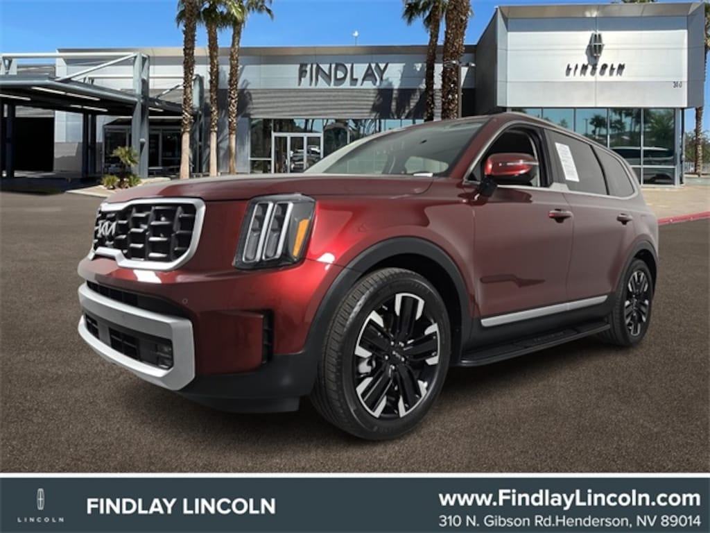 Welcome to Findlay Lincoln. All of our vehicles are hand picked and inspected for your peace of mind. This vehicle is equipped with the following options: Towing Package (Self Leveling Rear Suspension and Towing Hitch Standard), Heated & Ventilated Front Bucket Seats, 10 Speakers, 3.648 Axle Ratio, 3rd row seats: split-bench, 4-Wheel Disc Brakes, ABS brakes, Air Conditioning, Alloy wheels, AM/FM radio: SiriusXM, Apple CarPlay & Android Auto, Auto High-beam Headlights, Auto-dimming Rear-View mirror, Automatic temperature control, Brake assist, Bumpers: body-color, Carpet Floor Mats, Compass, Delay-off headlights, Driver door bin, Driver vanity mirror, Dual front impact airbags, Dual front side impact airbags, Electronic Stability Control, Emergency communication system: 911 Connect, Exterior Parking Camera Rear, Four wheel independent suspension, Front anti-roll bar, Front Bucket Seats, Front Center Armrest, Front dual zone A/C, Front fog lights, Front reading lights, Fully automatic headlights, Garage door transmitter: HomeLink, harman/kardon® Speakers, Heated door mirrors, Heated front seats, Heated steering wheel, Illuminated entry, Knee airbag, Leather Shift Knob, Leather steering wheel, Low tire pressure warning, Memory seat, Mud Guard Kit, Navigation System, Occupant sensing airbag, Outside temperature display, Overhead airbag, Overhead console, Panic alarm, Passenger door bin, Passenger vanity mirror, Power door mirrors, Power driver seat, Power Liftgate, Power moonroof, Power passenger seat, Power steering, Power windows, Radio data system, Radio: AM/FM Harman Kardon Audio System, Rear air conditioning, Rear anti-roll bar, Rear audio controls, Rear reading lights, Rear side impact airbag, Rear window defroster, Rear window wiper, Reclining 3rd row seat, Remote keyless entry, Roof rack: rails only, Security system, Smart Key w/ Push Button and Remote Start, Speed control, Speed-sensing steering, Split folding rear seat, Spoiler, Steering wheel mounted audio controls, Tachometer, Telescoping steering wheel, Tilt steering wheel, Traction control, Trip computer, Turn signal indicator mirrors, Variably intermittent wipers, Ventilated front seats, and X-Line Side Step Bars. 2024 Kia Telluride SX-Prestige